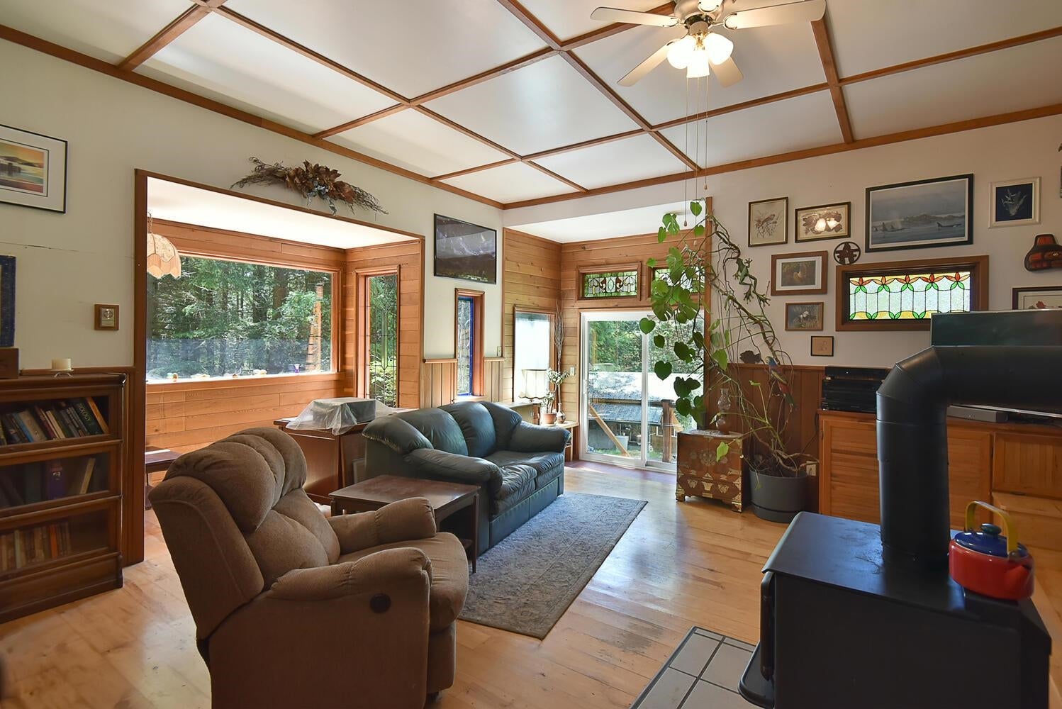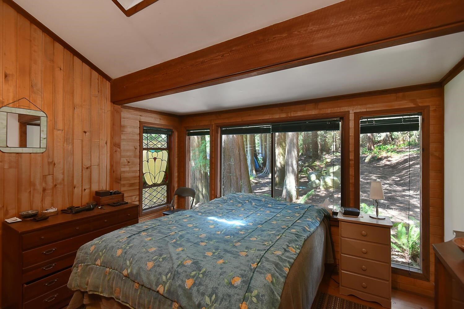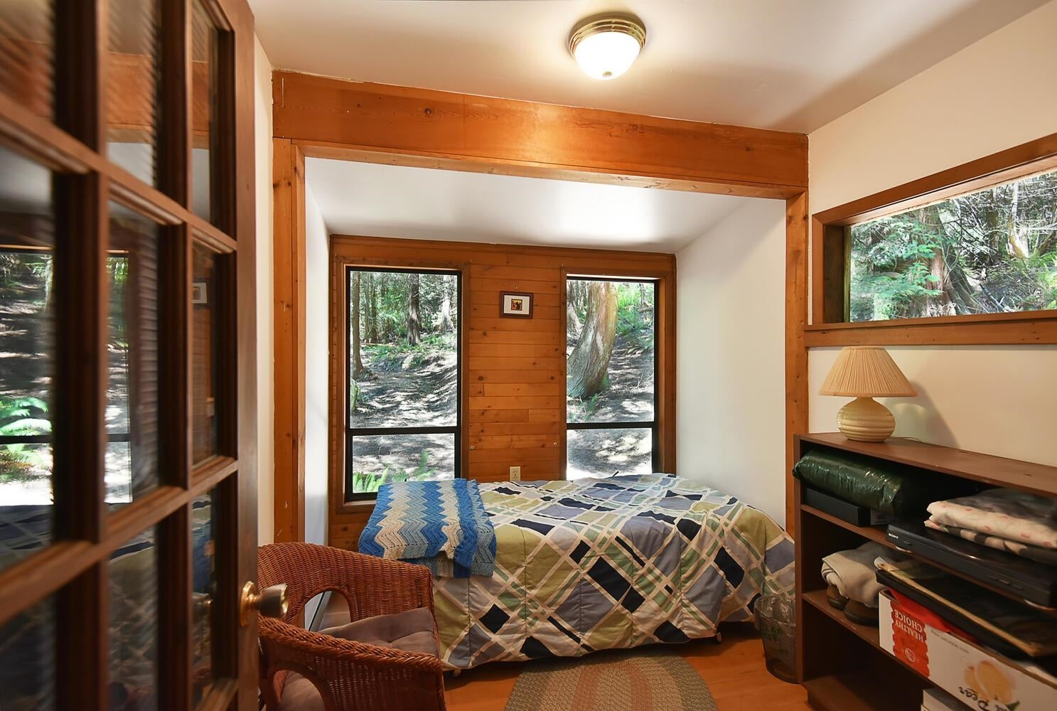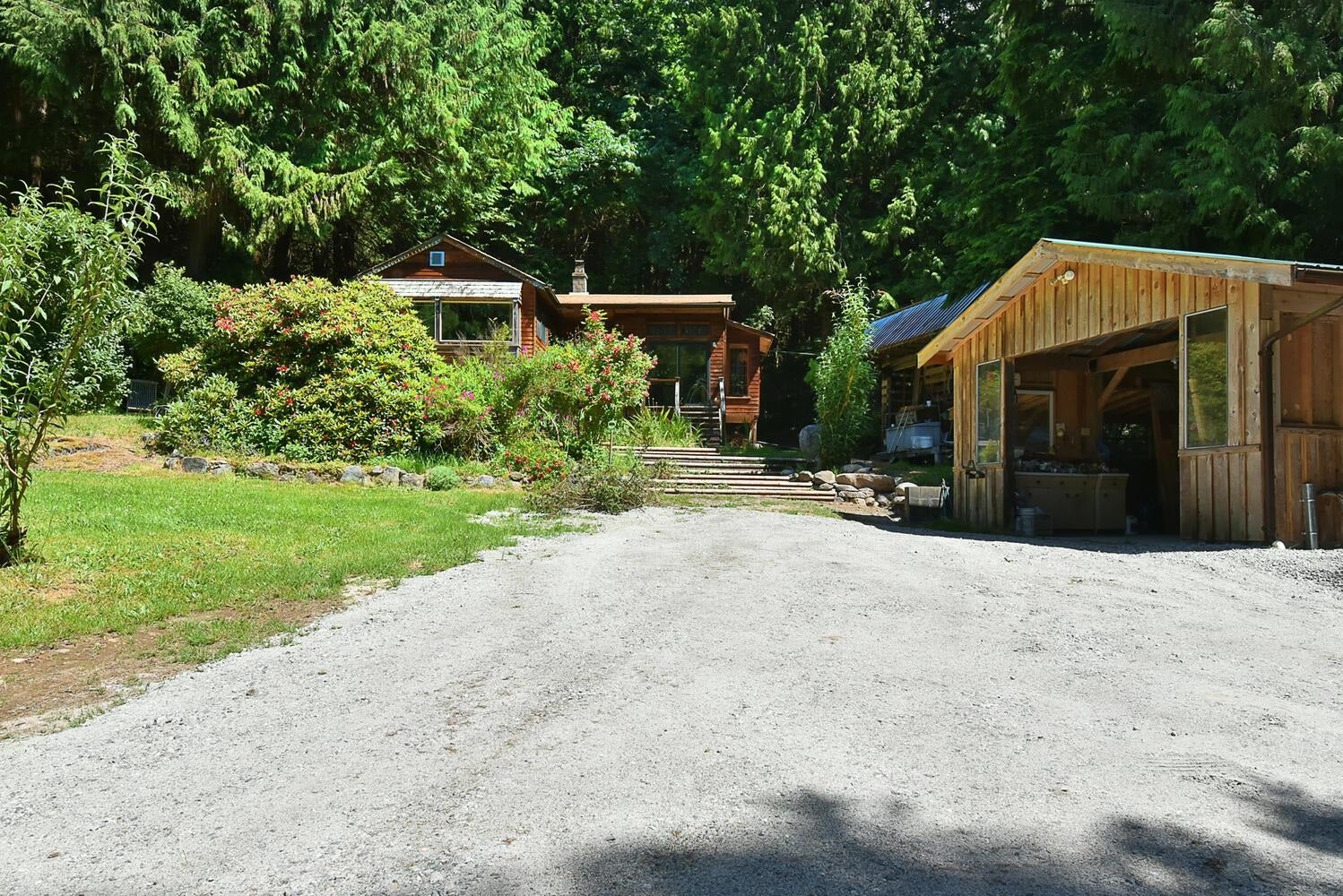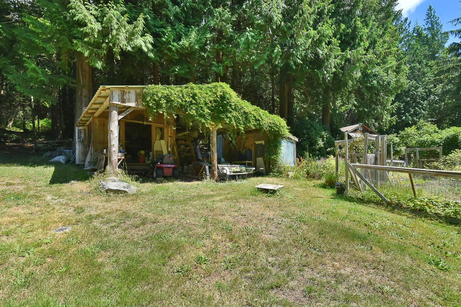 Your home in the forest. Located on 4.62 acres this cozy craftsman style home, with hardwood floors and stained glass windows, epitomizes your vision in Roberts Creek. Grassy meadows, vegetable gardens and acres of mature forest makes living on this property like being in your own private park. The home is 1159 square feet and full of character with 2 bedrooms and 2 bathrooms, an open kitchen, and a sunken living room with a cozy woodstove keeping you warm on winter days. There is ample storage on the property with numerous out builings and a well constructed covered carport wired for a car charger. Zoning allows for another full sized dwelling. Gardeners will appreciate ample fresh water from the drilled well as well as water rights on both year-round creeks.