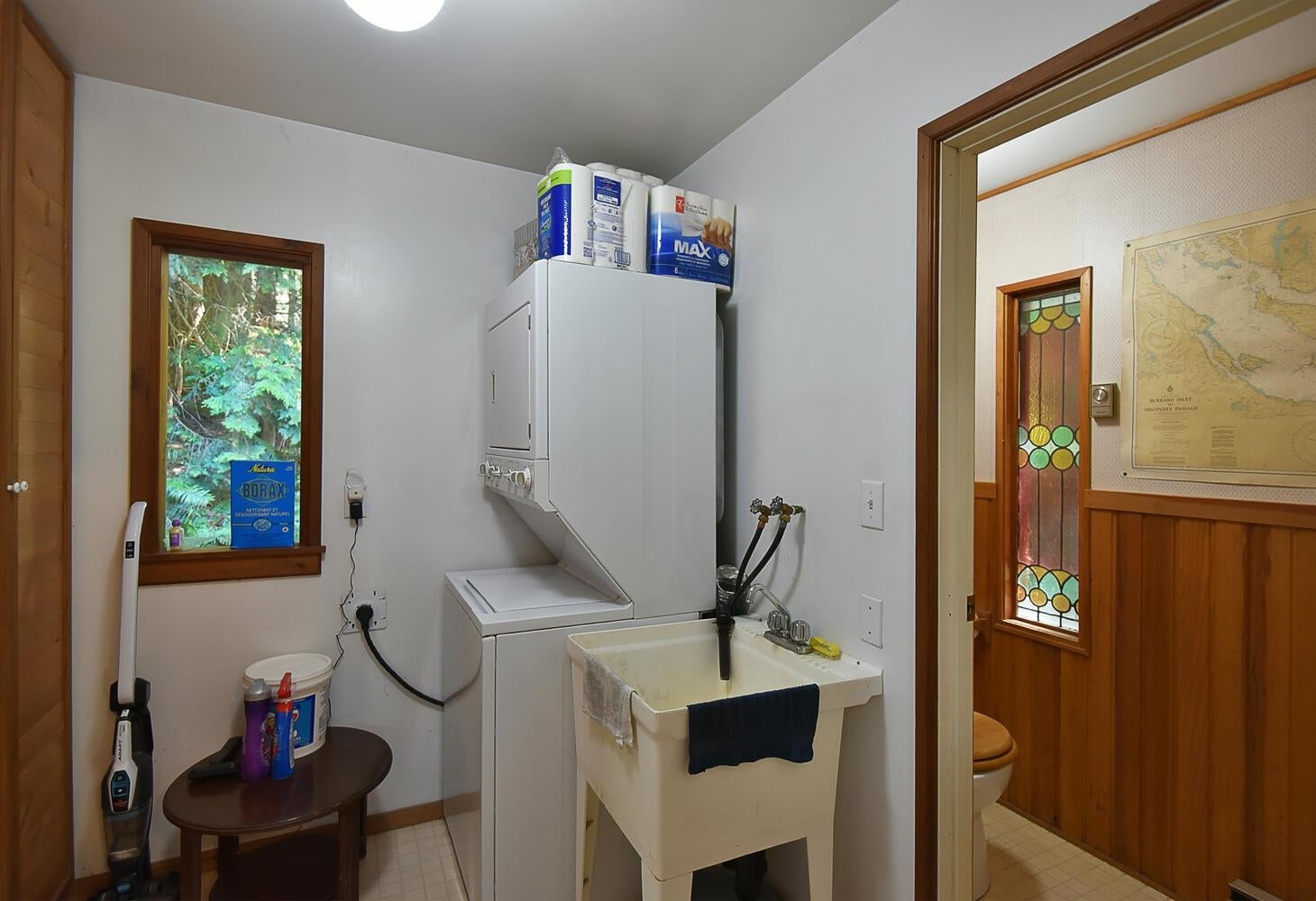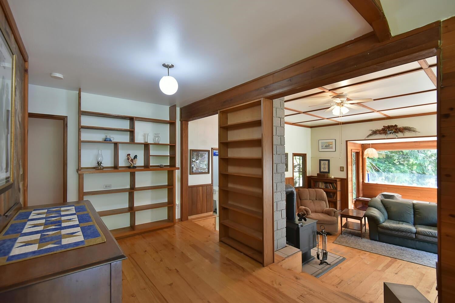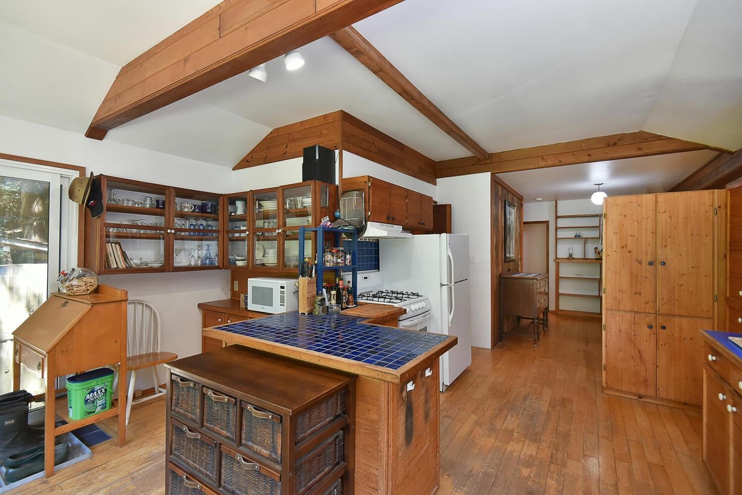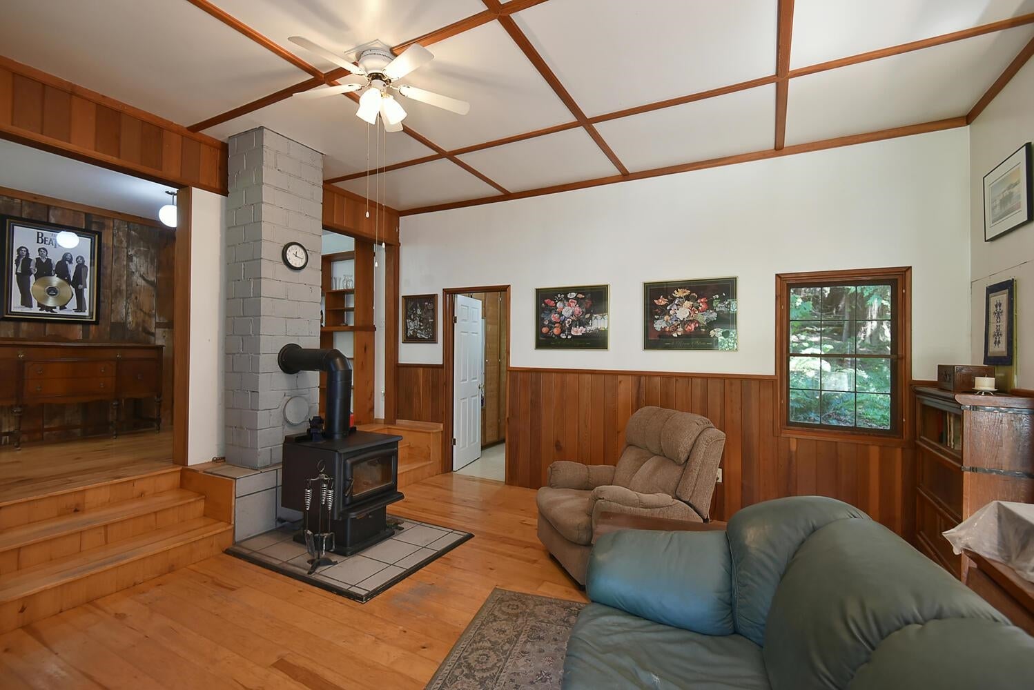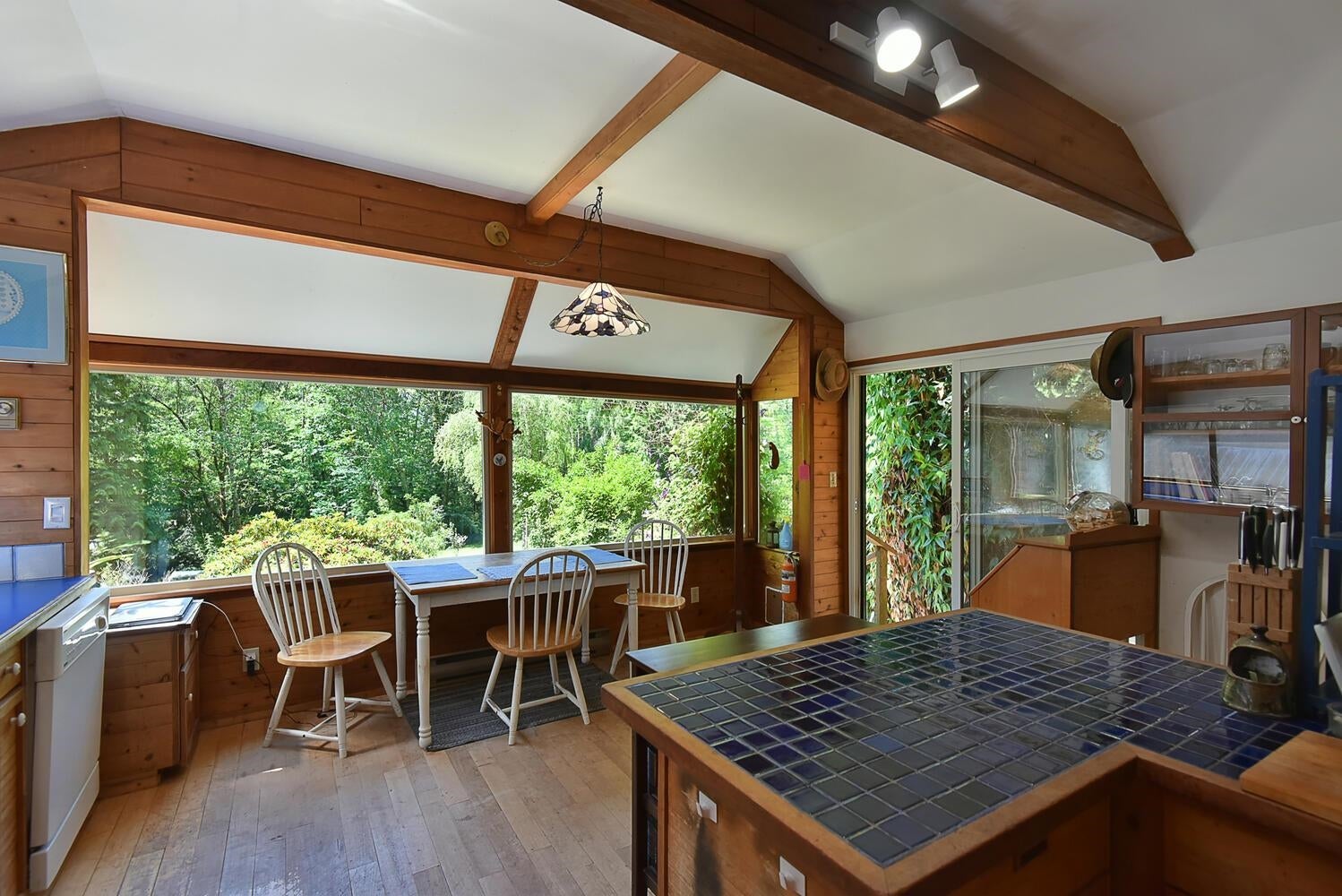 Your home in the forest. Located on 4.62 acres this cozy craftsman style home, with hardwood floors and stained glass windows, epitomizes your vision in Roberts Creek. Grassy meadows, vegetable gardens and acres of mature forest makes living on this property like being in your own private park. The home is 1159 square feet and full of character with 2 bedrooms and 2 bathrooms, an open kitchen, and a sunken living room with a cozy woodstove keeping you warm on winter days. There is ample storage on the property with numerous out builings and a well constructed covered carport wired for a car charger. Zoning allows for another full sized dwelling. Gardeners will appreciate ample fresh water from the drilled well as well as water rights on both year-round creeks.