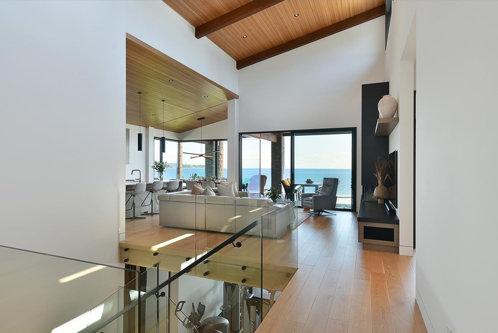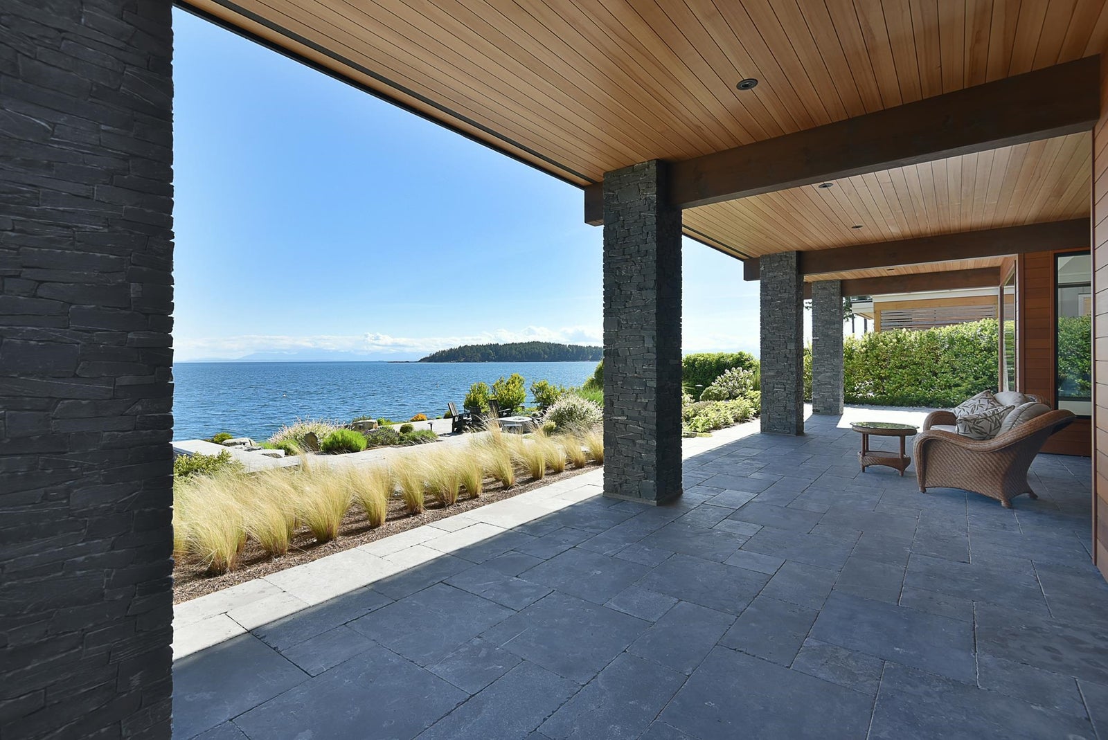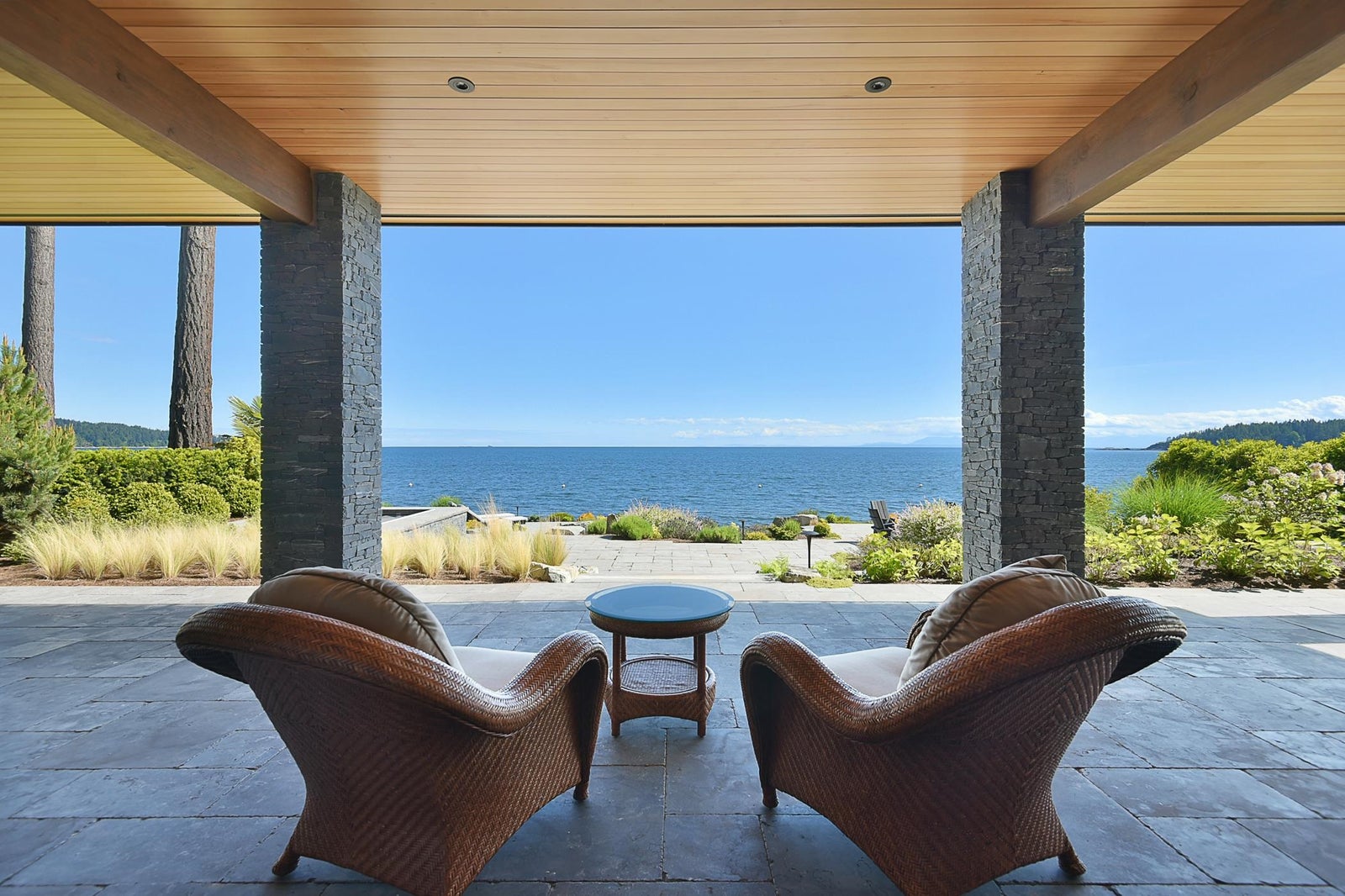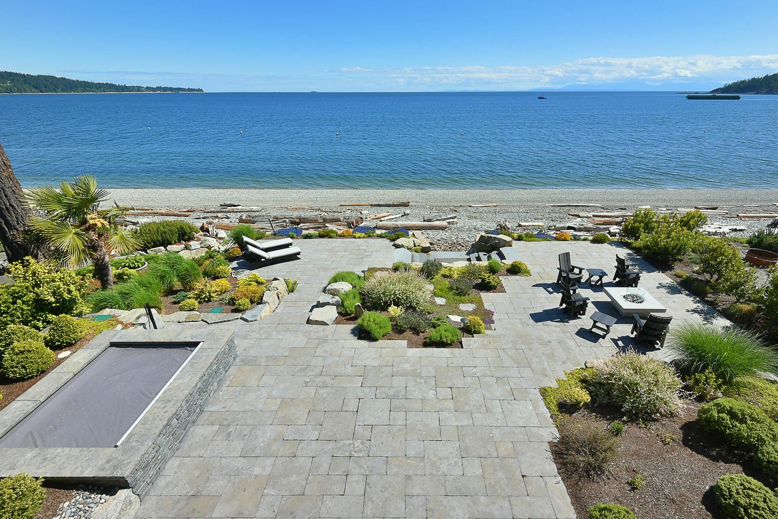 6021 Silver Stone Lane, architecturally designed and constructed by Dave Hutt fine homes. This stunning contemporary home exudes style, design, and attention to detail. Floor to ceiling windows and doors capture abundant natural light and enhance unparalleled views of Trail Bay and all 4 of the the Trail Islands. The primary bedroom with its beautiful windows place the view center stage, the primary bathroom is truly lovely. The kitchen living and dining room are open and expansive with high vaulted clear cedar ceilings with tasteful fir beams. Take the stairs or elevator to the lower floor, 2 large bedrooms with ensuite bathrooms and family room, Oceanside gardens & entertainment area with built in hot tub and one-of-a-kind gas fire pit easy access to the pebble beach for beach activities