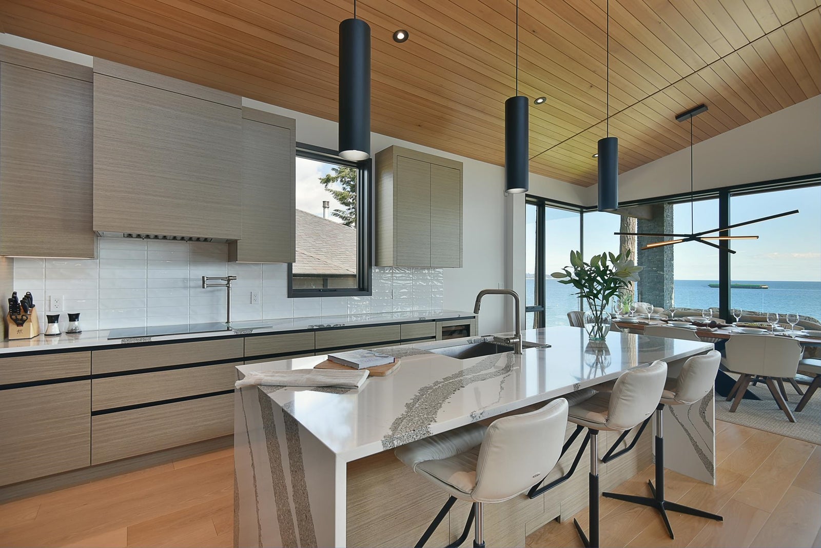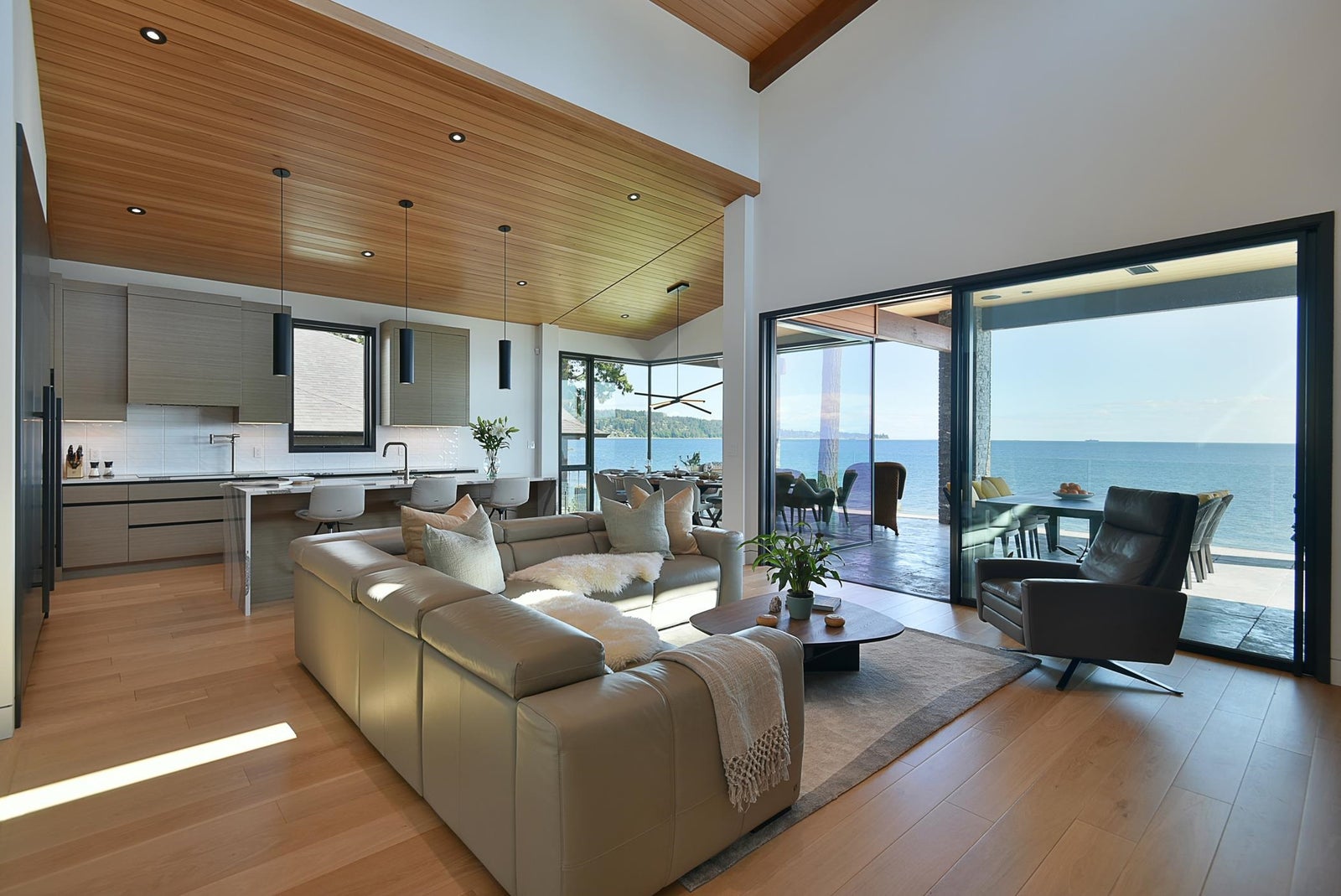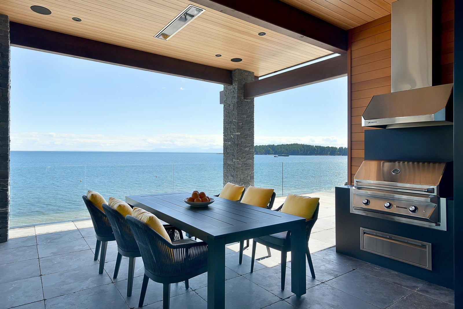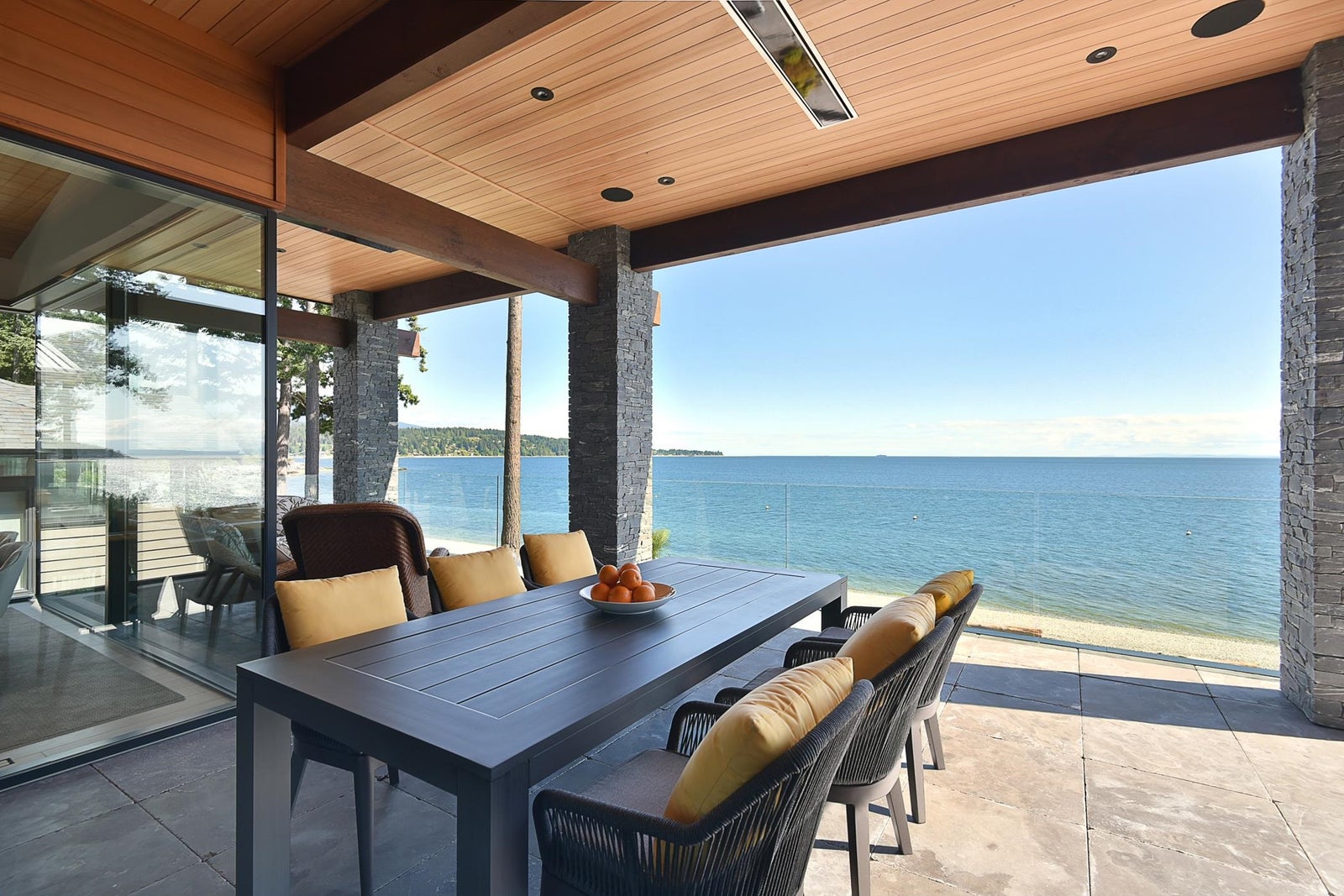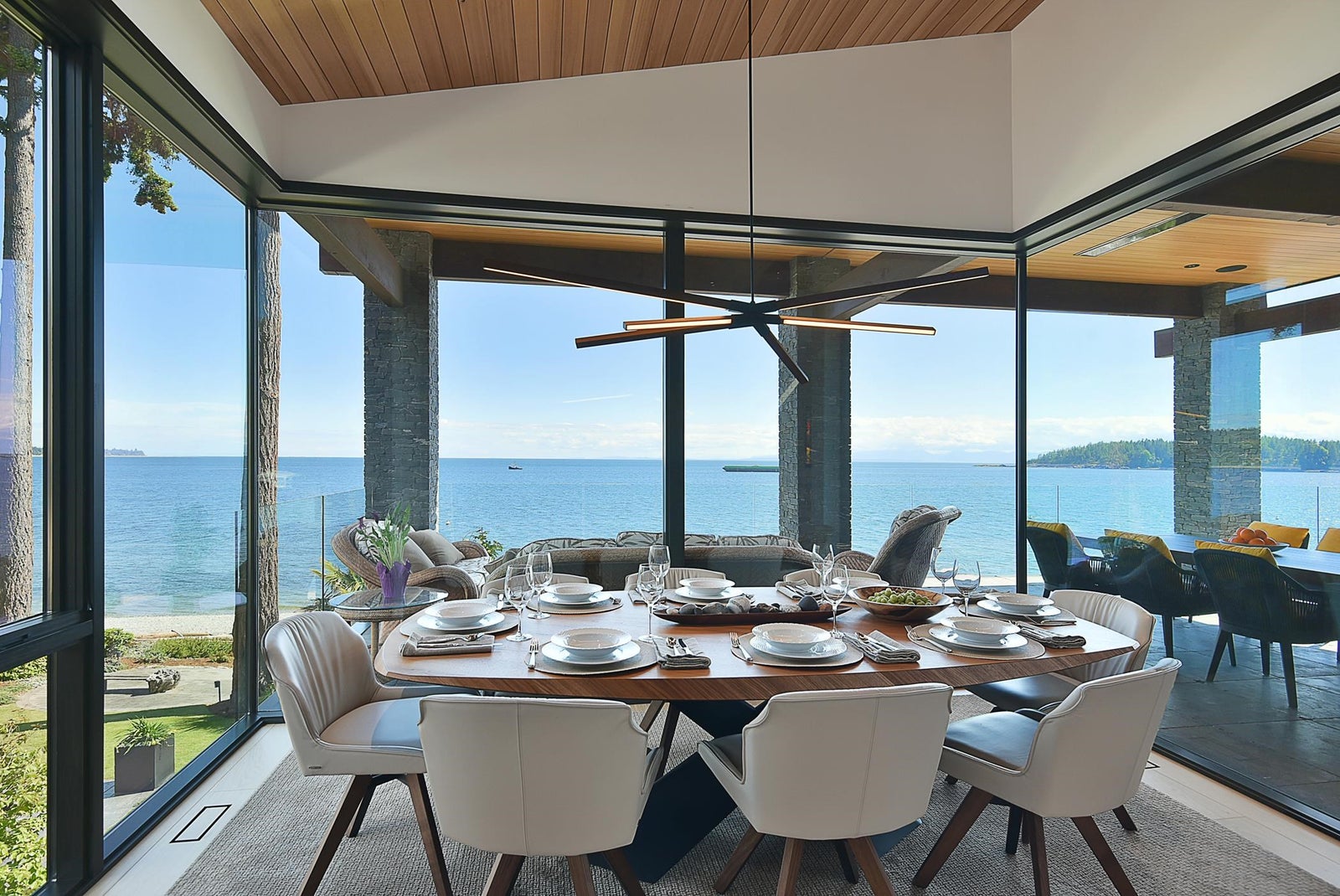 6021 Silver Stone Lane, architecturally designed and constructed by Dave Hutt fine homes. This stunning contemporary home exudes style, design, and attention to detail. Floor to ceiling windows and doors capture abundant natural light and enhance unparalleled views of Trail Bay and all 4 of the the Trail Islands. The primary bedroom with its beautiful windows place the view center stage, the primary bathroom is truly lovely. The kitchen living and dining room are open and expansive with high vaulted clear cedar ceilings with tasteful fir beams. Take the stairs or elevator to the lower floor, 2 large bedrooms with ensuite bathrooms and family room, Oceanside gardens & entertainment area with built in hot tub and one-of-a-kind gas fire pit easy access to the pebble beach for beach activities